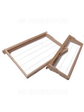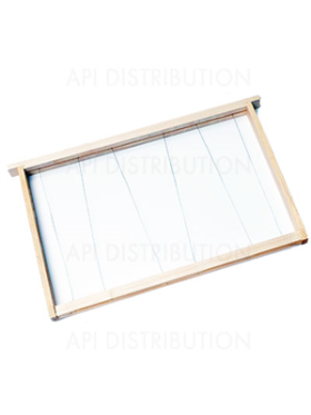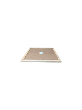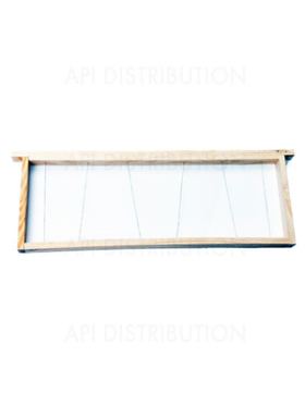 Couvre cadres Langstroth 10 cadres en bois avec encadrement, trou central et bouchon plastique. Dimensions : 412X506 mm. D'un coté, l'espace entre la plaque et le tasseau est de 8mm, de l'autre coté l'espace est de 23mm.