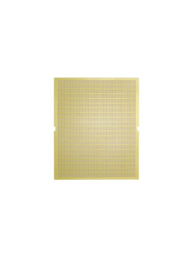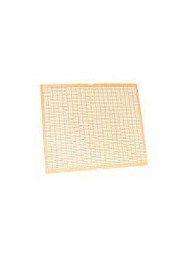 Grille à reine injectée en matière plastique alimentaire recyclable semi-rigide. Couleur Ivoire. Grande précision et un maximum de trous. Épaisseur 2,5 mm, dimensions : 425 x 500 mm. Passages précis à bords arrondis...