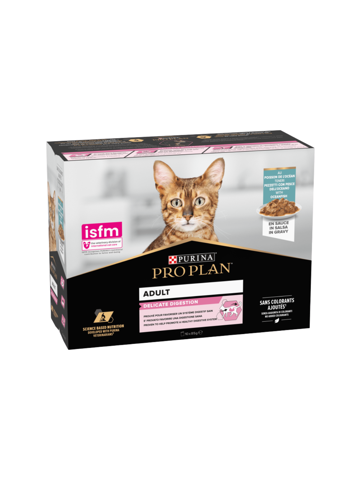 Proplan Nutri Savour Cat Delicate Poisson Sauce (pochons) Sachet repas Aliment complet pour chats adultes sensibles, chats à l'appétit difficile.