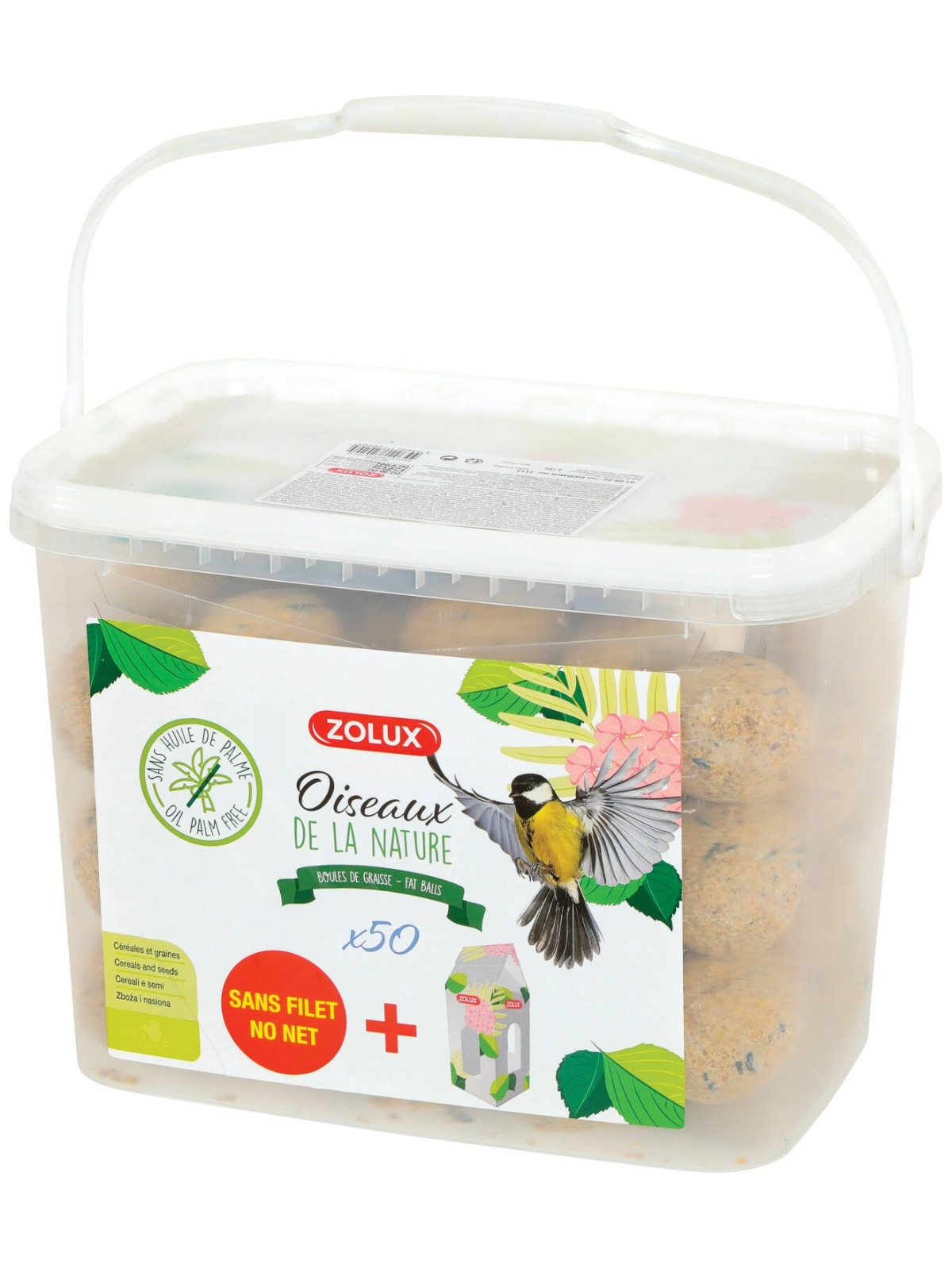 Le produit « Boules de graisse 90 g × 50 (seau) » de Zolux est un format économique et pratique pour offrir un soutien alimentaire aux oiseaux sauvages de votre jardin, balcon ou terrasse.