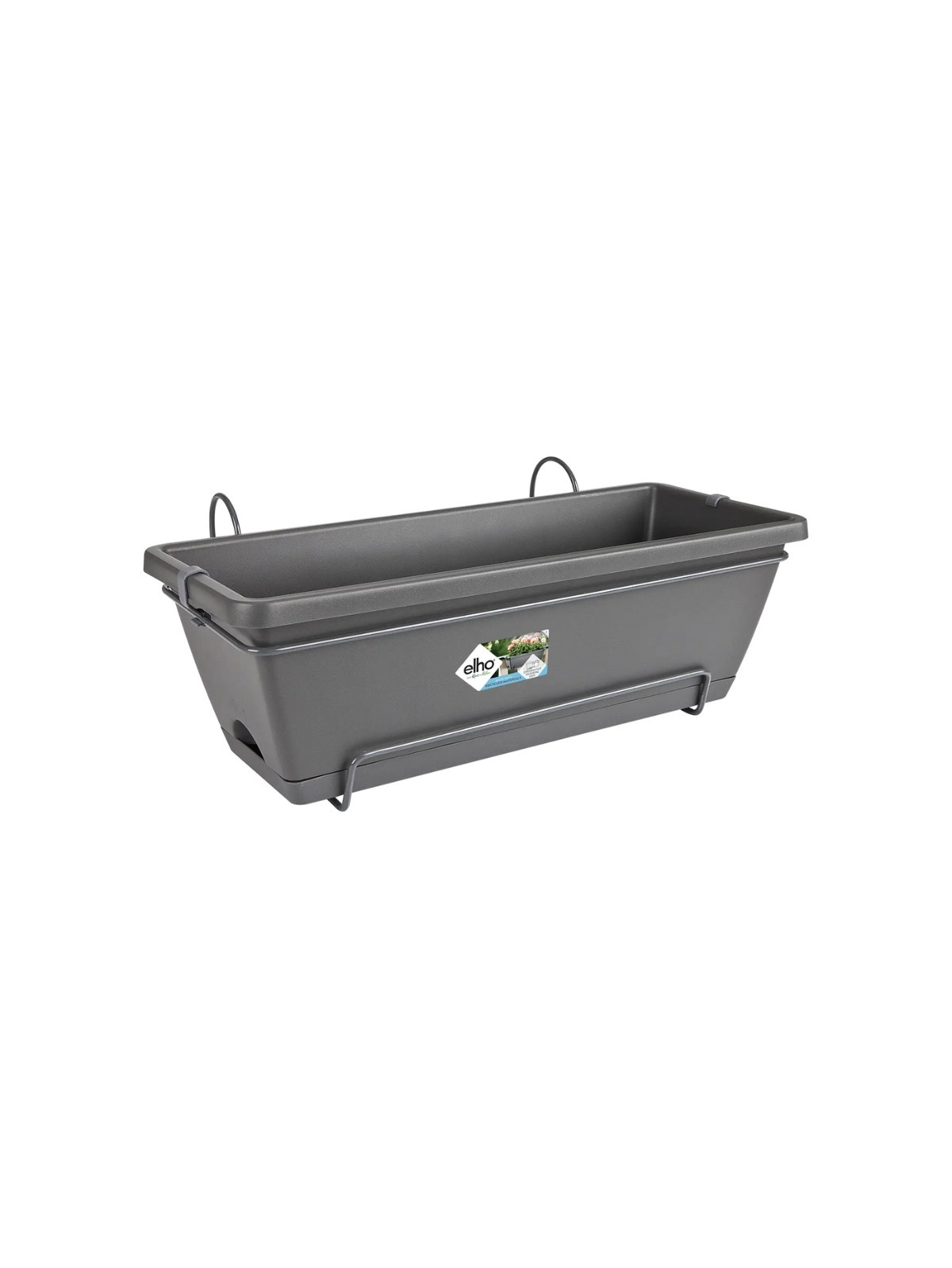 La jardinière Barcelona All-in1 50 de Elho s’adresse à ceux qui souhaitent végétaliser leur balcon, terrasse ou rebord de fenêtre avec élégance et simplicité. Elle fait partie de la collection “Barcelona”, reconnue pour ses formes raffinées et fonctionnelles, entièrement fabriquées à partir de matériaux recyclés. Le modèle 50 mesure environ 50 cm de longueur, 28 cm de profondeur et 19 cm de hauteur avec une capacité d’environ 9,5 litres. Il s’installe sur des balustrades jusqu’à une largeur de 6 cm grâce à une monture intégrée, sans nécessiter d’outils supplémentaires. La jardinière est dotée d’un système d’évacuation de l’eau via un bec latéral et d’une soucoupe intégrée, protégeant ainsi les racines de l’abondance d’eau. Elle convient très bien à l’usage extérieur grâce à des caractéristiques techniques solides : résistance aux UV, au gel. Le design simple et contemporain, permet une association facile avec différentes plantes, couleurs et styles : par exemple terracotta, anthracite, vert menthe…